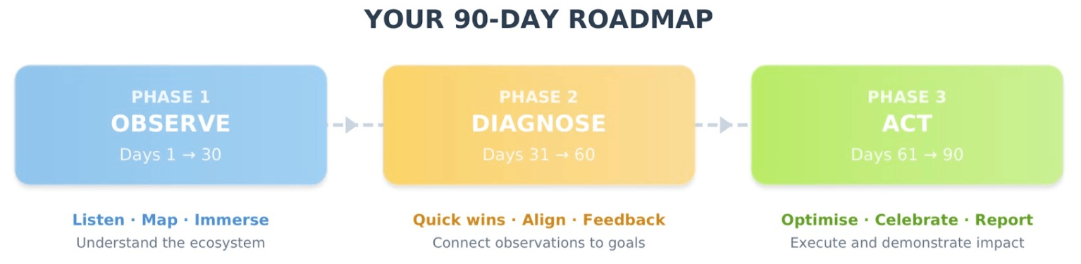This guide is designed to be read, but also to be used. To support you practically day to day, we have created a downloadable starter kit that complements each step described here. It contains a task checklist for each phase to tick off as you go through your 90 days, as well as a structured guide for running your one-on-one conversations.